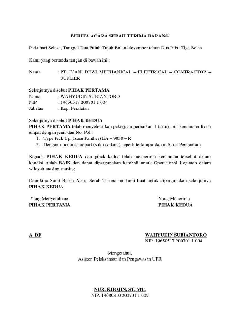 Berita Acara Serah Terima Barang Pdf